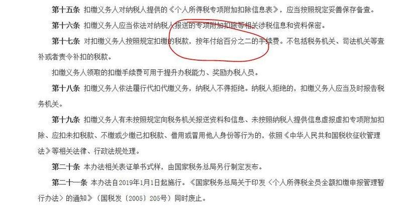而且办法提到,按照办法提到,对扣缴义务人按照规定扣缴的税款,按年付给百分之二的手续费。不包括税务机关、司法机关等查补或者责令补扣的税款。扣缴义务人领取的扣缴手续费可用于提升办税能力、奖励办税人员。所以别看公司帮你申报,都是义务的,其实是有奖励的。