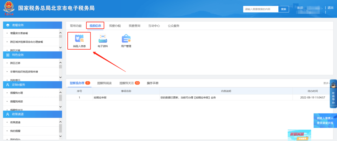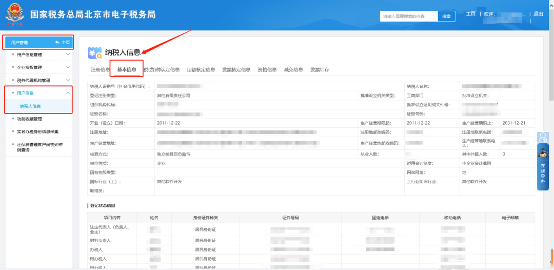 一、我的信息—纳税人信息。