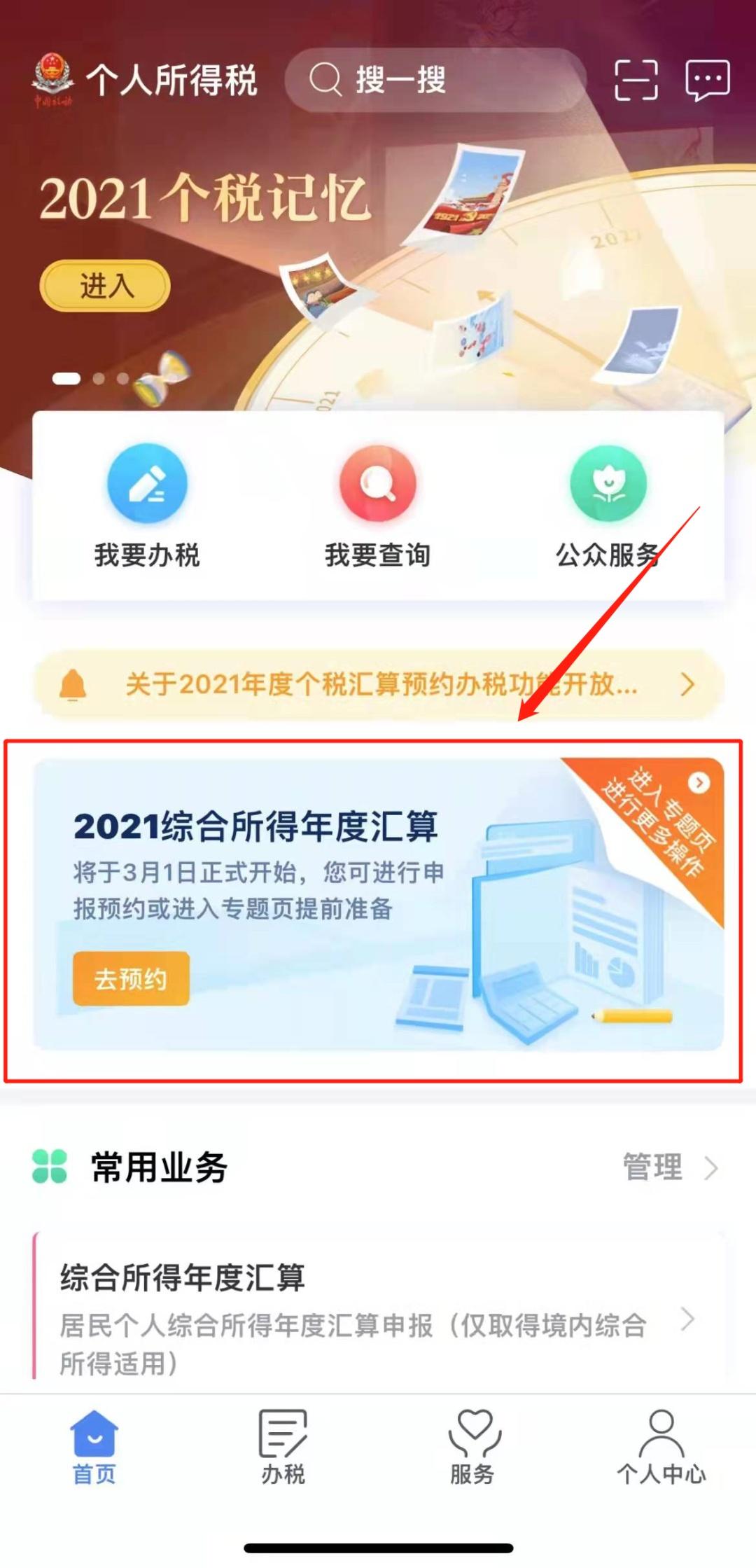 首页点击“2021综合所得年度汇算”中的“进入专题页 进行更多操作”,选择“汇算准备”,进入“专项附加扣除”查询或填报界面。