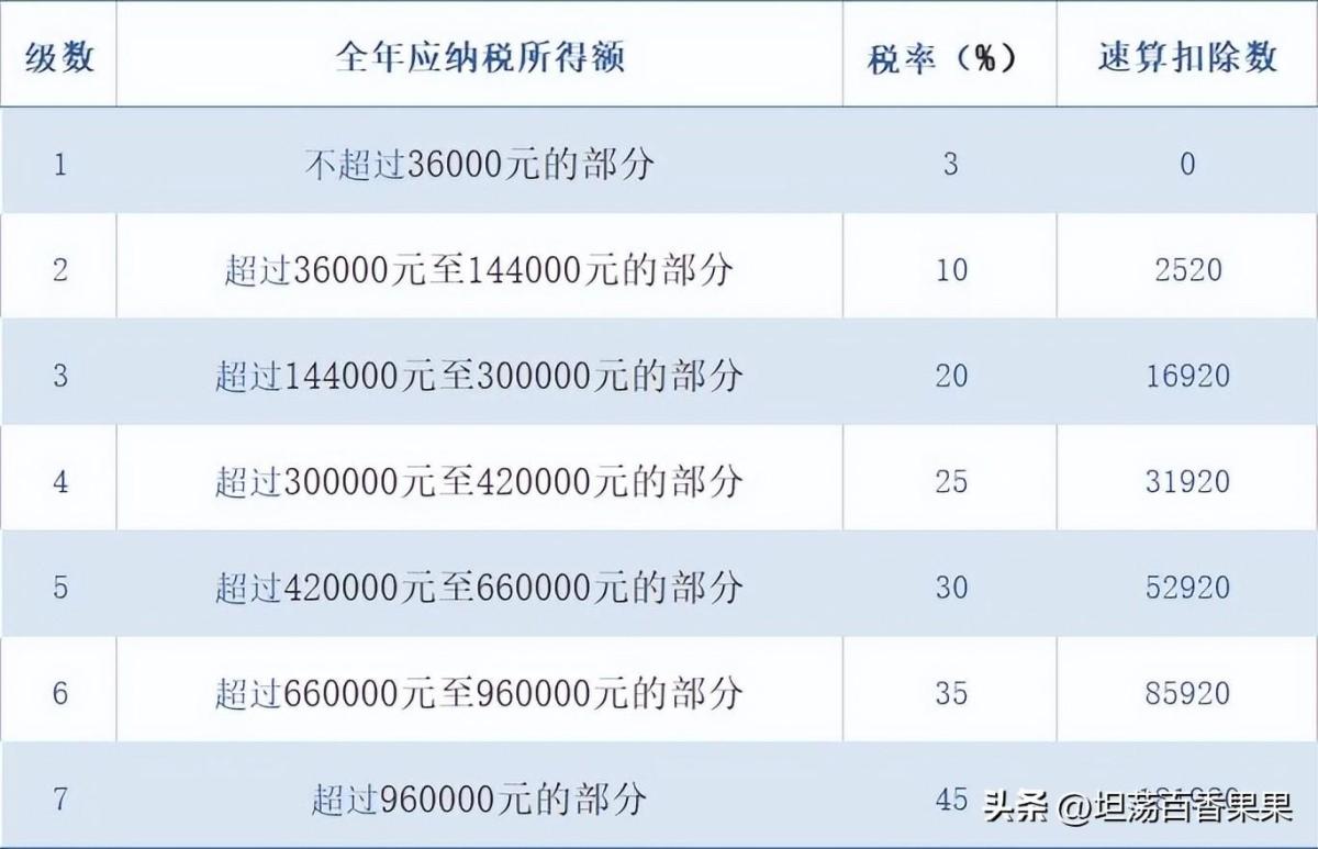 个人所得税税率表(综合所得适用)