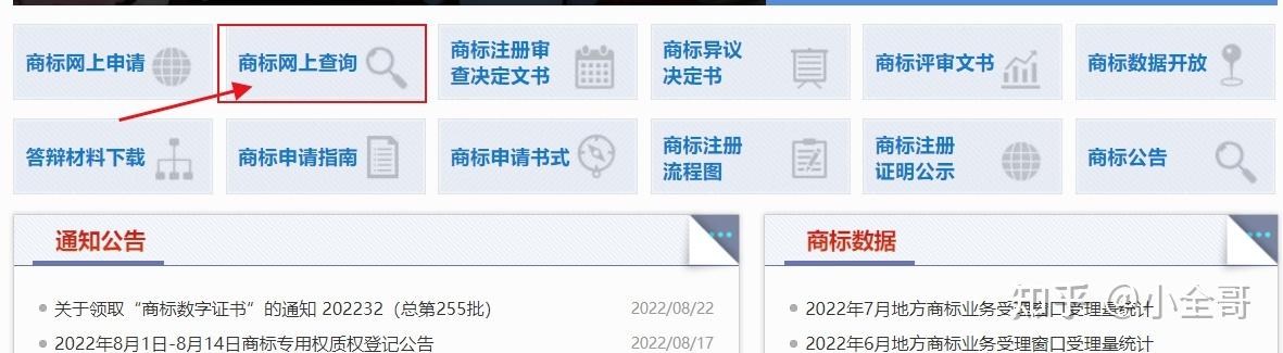 一、首先登陆国家商标局官网 http://sbj.cnipa.gov.cn/sbj/index.html(官网链接,点击即可)