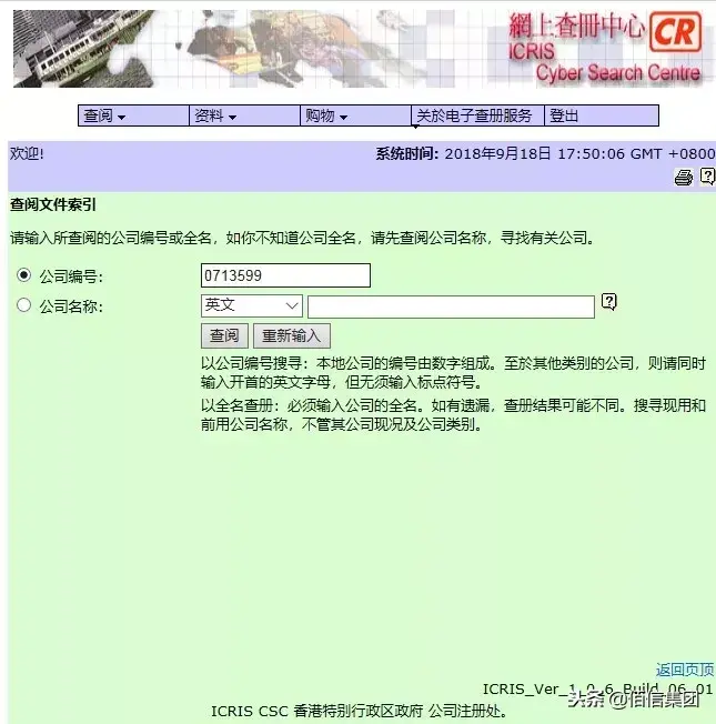 已经注册的香港公司,点击“影像资料”在“公司编号”栏输入公司编号查询完成。