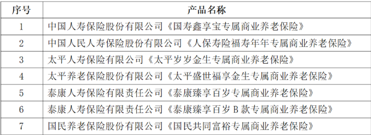 个人养老金保险产品方面,包括年金保险、两全保险,以及银保监会认定的其他产品。目前,6家机构的7只个人养老金保险产品首批出炉,均为专属商业养老保险产品。