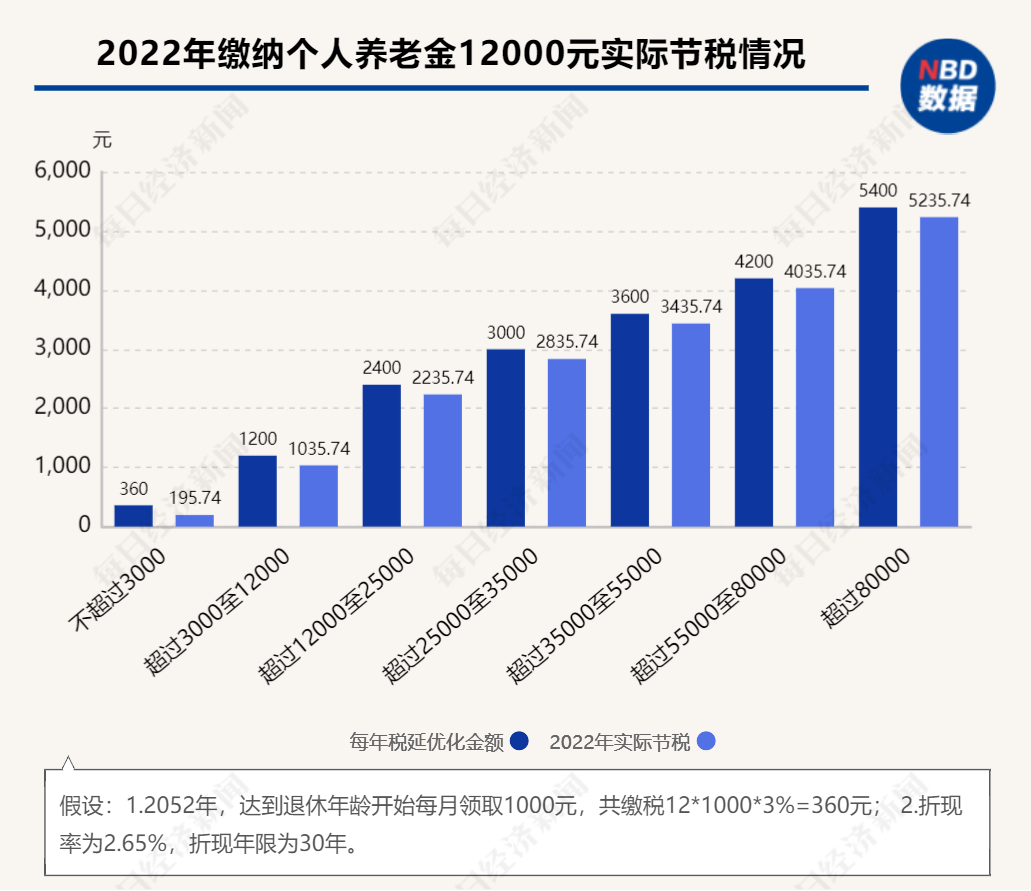 根据规定,参加人每年缴纳个人养老金额度上限为12000元,实际缴存的资金予以税前扣除,投资收益暂不征税,领取收入的实际税负由7.5%降为3%。