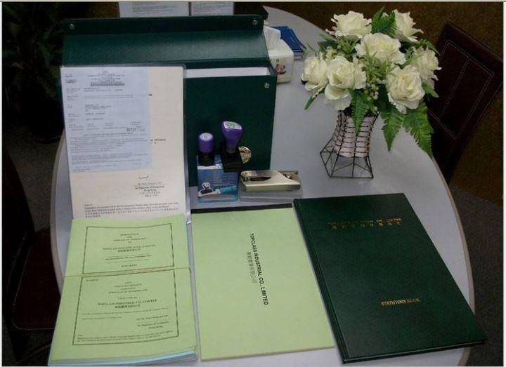注册后会有一套香港公司资料:包含注册证书,商业登记证,股本,股东名册,长条章,圆章,钢印等资料。