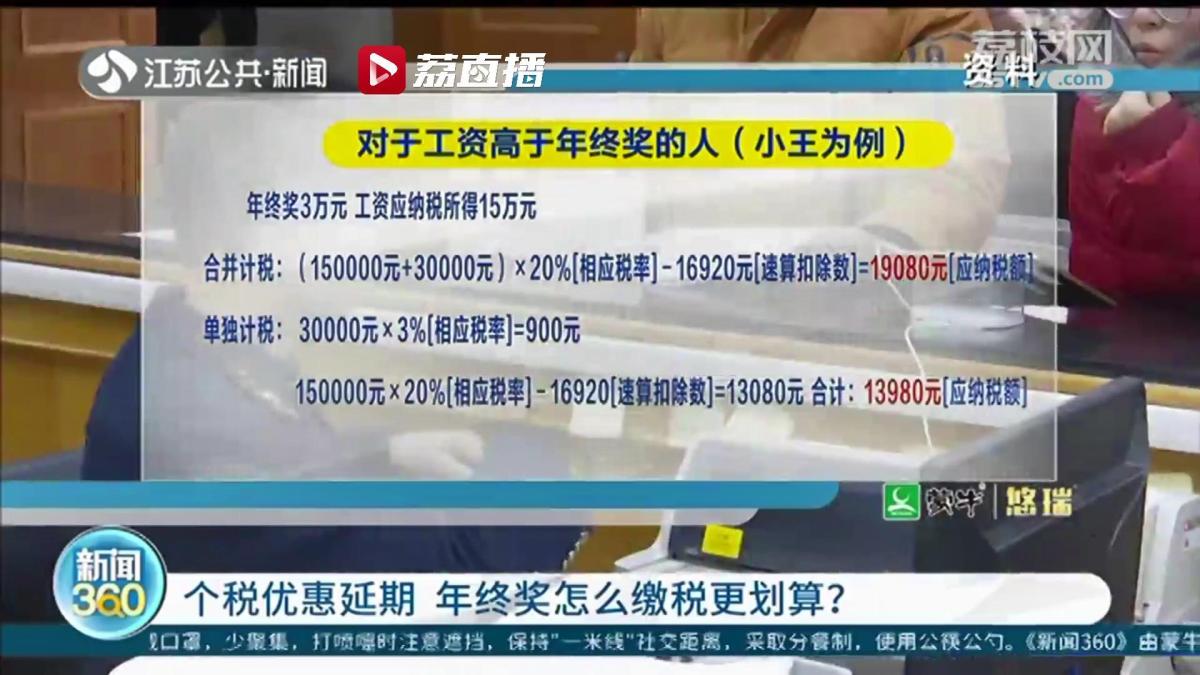 到了年底,奖金扣税如何计算是大家非常关心的。12月29日,国务院常务会议决定延续实施部分个人所得税优惠政策。一是将全年一次性奖金不并入当月工资薪金所得、实施按月单独计税的政策延至2023年底;二是将年收入不超过12万元且需补税或年度汇算补税额不超过400元的免予补税政策延至2023年底。个税优惠政策延续,对我们的“钱袋子”有哪些影响?