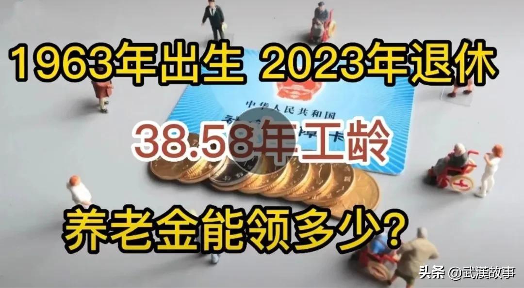 举例说明(如图),看看武汉退休养老金,1963年出生,2023年退休,工龄38.58年。