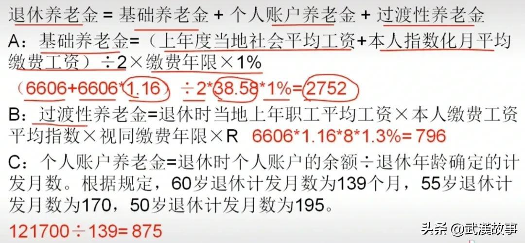 武汉预估退休养老金=2752+796+185=4423元;