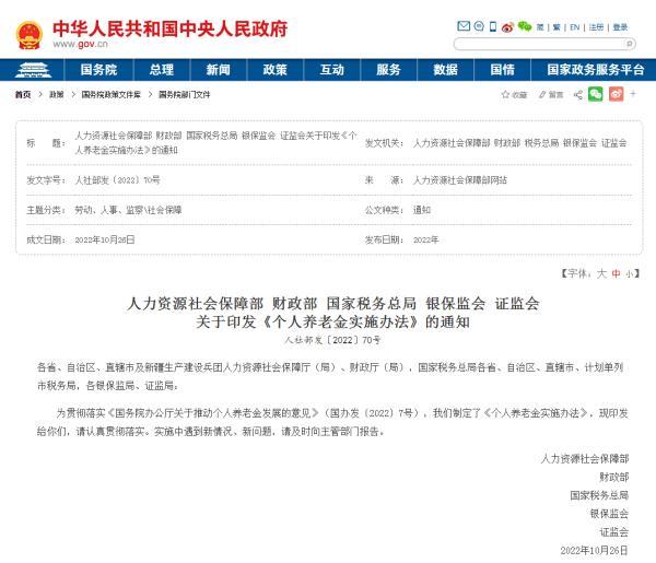 怎样享受税收优惠? A:个人养老金的一大亮点是可享受税收优惠支持。《实施办法》明确,参加人可以通过国家社会保险公共服务平台等全国统一线上服务入口或者商业银行渠道,获取享受税收优惠政策的缴费凭证。 作为养老保险“第三支柱”,今年以来个人养老金加速推进制度安排。此次公布《实施办法》,目的在于加强个人养老金业务管理,规范个人养老金运作流程,以便稳妥有序推动个人养老金发展,提高参加人养老保障水平。因此,除了个人养老金产品应当具备运作安全、成熟稳定、标的规范、侧重长期保值等基本特征外,个人养老金机构与产品管理还应以“销售适当性”为原则,做好风险提示,不得主动向参加人推介超出其风险承受能力的个人养老金产品。