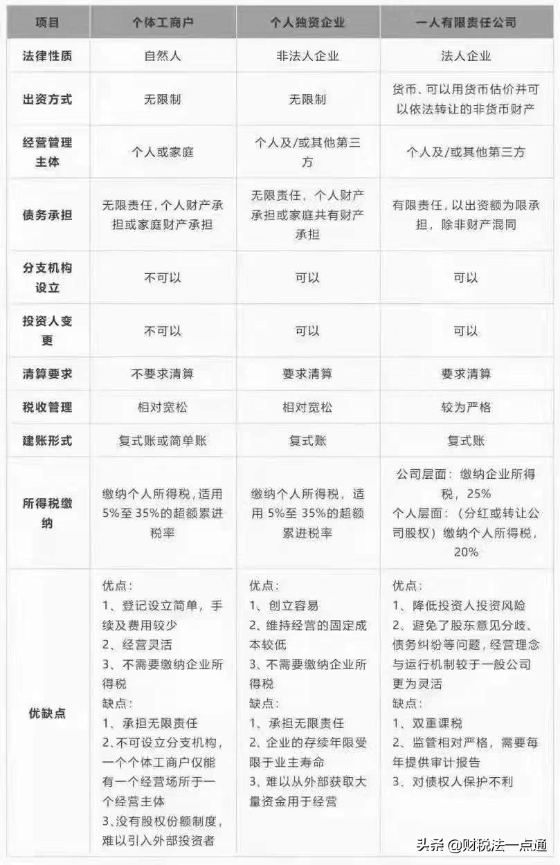 个人独资企业与个体户和个人有限公司的区别: