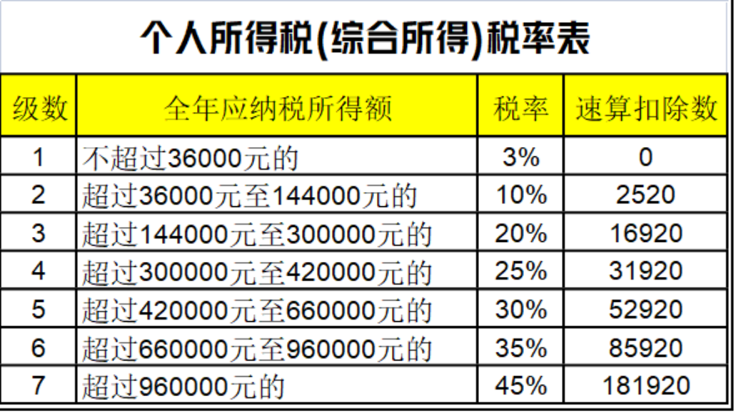 综合所得税率表是结合应纳税的所得多少采用不同的税率(3%-45%)来计算税额的,也就是说,年金的也是这样,年度年金领取的越多,税率就越高。
