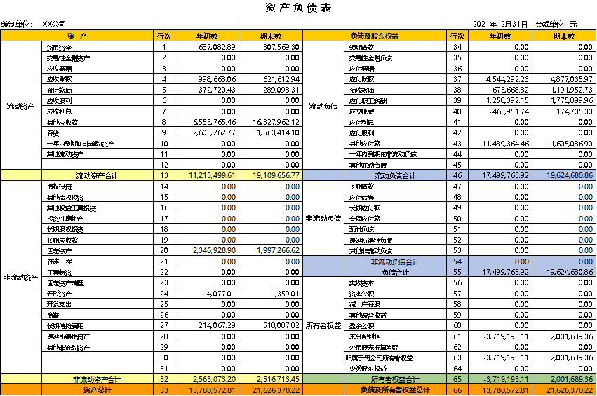 我们以一个项目为例,资产负债表示意如下: