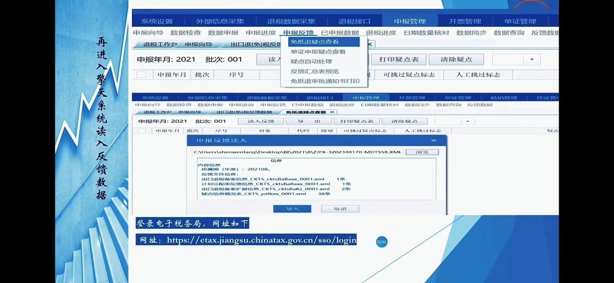 登录国税局的网站后,在我要办税~出口退税管理~出口退免税申报~免抵退税申报~离线申报~数据自检申报~选择数据包存放的位置