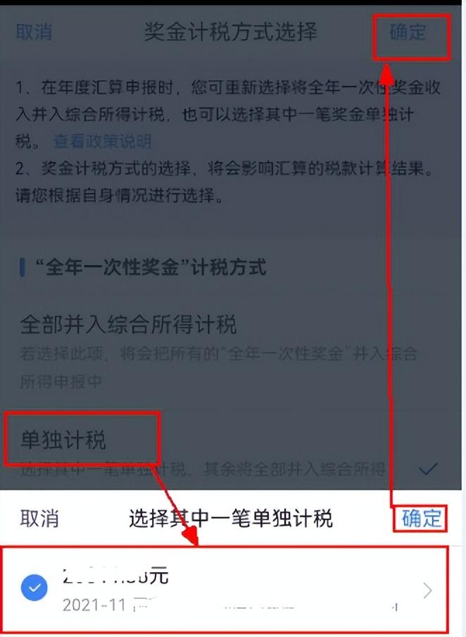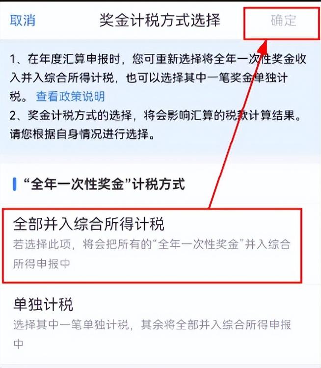 年度汇算期间,在选择全年奖计税方式时,建议您根据自身情况,选择对您更为有利的计税方式。您可以登录手机个税APP,在汇算申报时分别选择按合并计税或单独计税方法,个税APP会自动算出结果,比较一下,哪种划算选择哪种就可以了。
