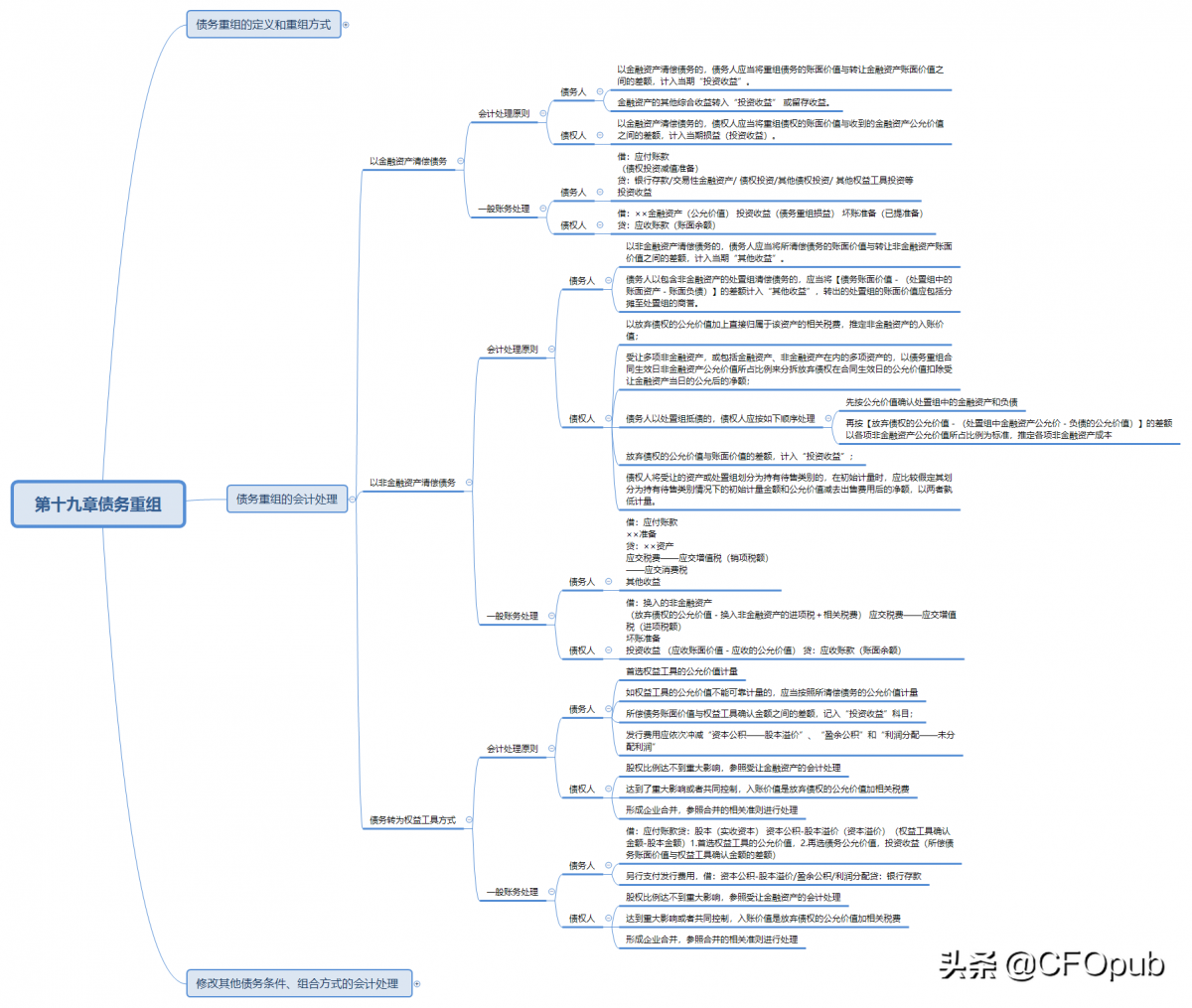①以金融资产清偿债务的,债务人应当将重组债务的账面价值与转让金融资产账面价值之间的差额,计入当期“投资收益”。 ②金融资产的其他综合收益转入“投资收益” 或留存收益。 |