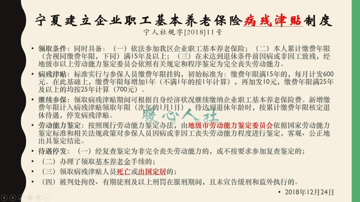 三、病残津贴的待遇,主要适用于因病非因工失去劳动能力的人,但是全国目前没有统一的政策,一般要求参保缴费满15年以上,所以年轻人越早参保越好。这种退休待遇,实际上不设退休年龄。