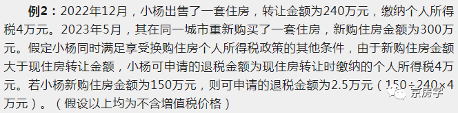 这个价格主要是用于计算再买房金额是否大于现住房转让价格,至于具体到退税金额来说,还是按照卖房时交了多少个税为准,交多少就按标准退多少。