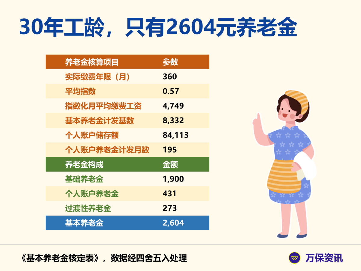 李小姐把《基本养老金核定表》发给我们看,想知道2604元如何计算出来。
