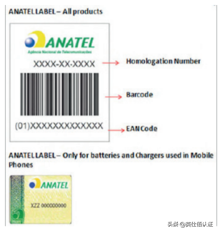 取得ANATEL认证的产品,必须在产品或产品包装上施加ANATEL认证标签,ANATEL认证标识的样式如下: