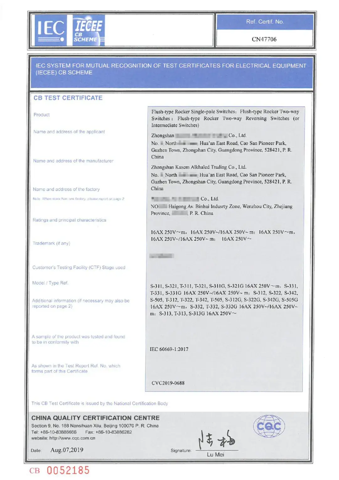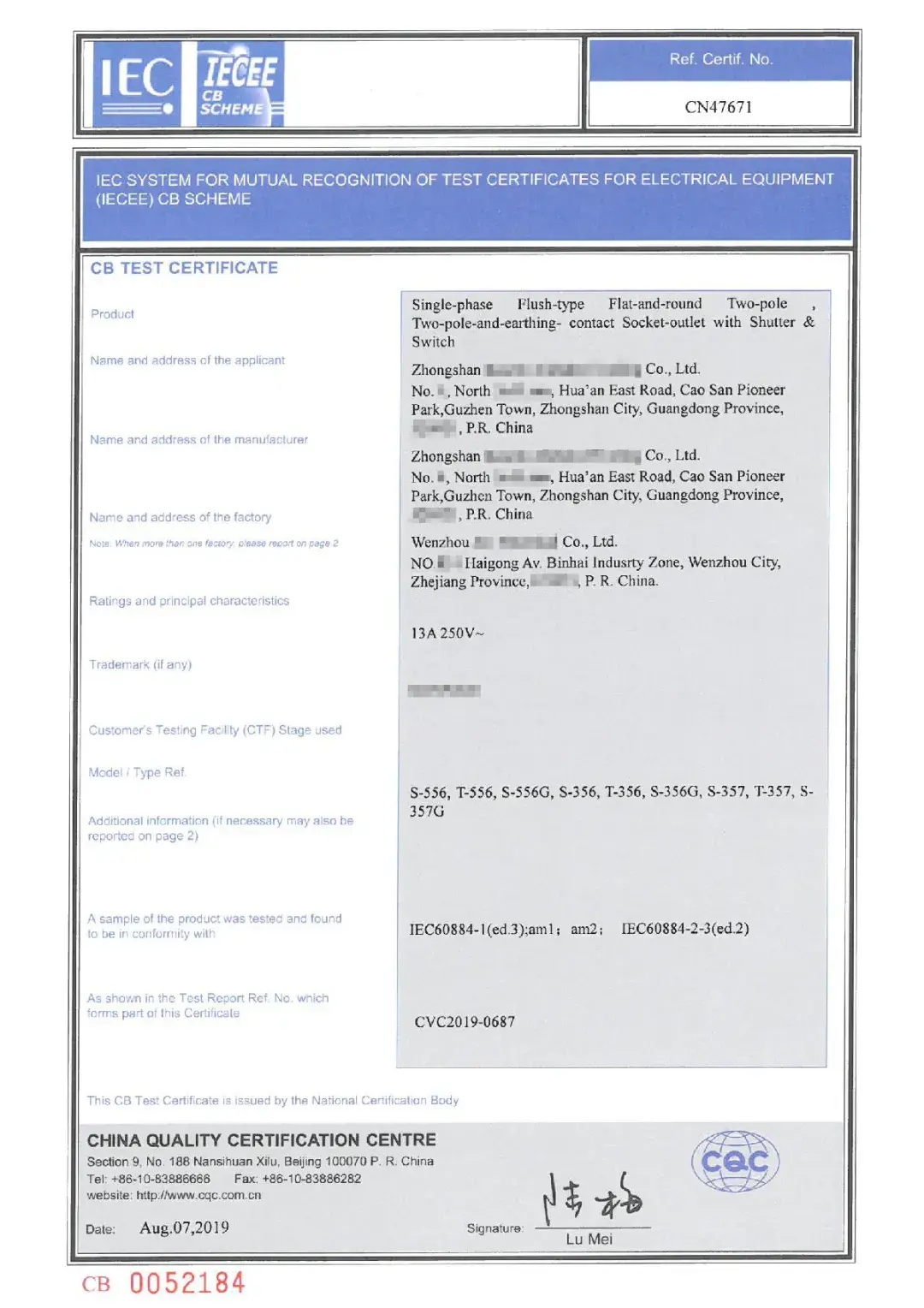 根据CB测试报告和差异试验出具中国国家产品认证报告,从而获得我国的电工产品强制或其它自愿认证证书。