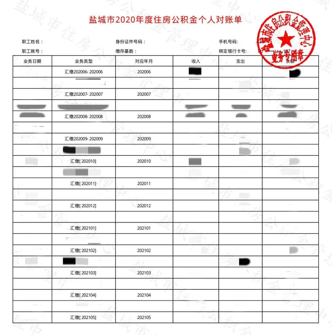我市职工公积金个人对账单