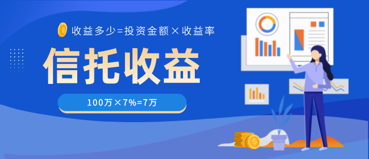 信托产品收益计算公式:收益多少=投资金额×收益率(按较为常见的100万门槛投资金额,2021年平均收益7%计算,100万×7%=7万)