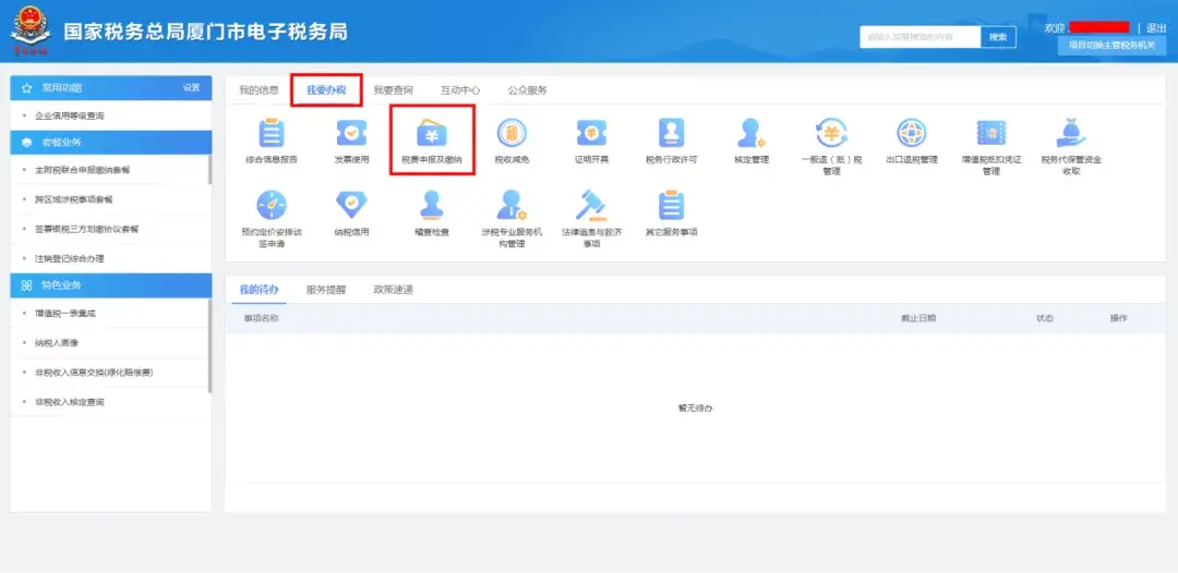 1:登录厦门市电子税务局。