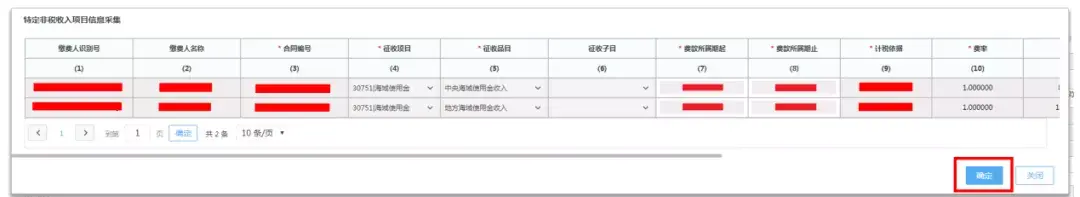 系统自动弹出“特定非税收入项目信息采集”页面,需核对自然资源部门交换给税务部门的核定信息,核对无误点击【确定】,若对核定信息有疑问,请及时联系自然资源部门。