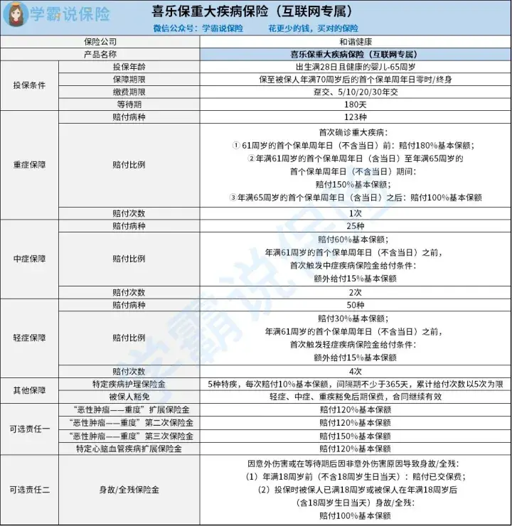 碍于篇幅,下面学姐就以和谐健康保险的喜乐保重疾险(互联网专属)为例,给大家简单介绍下。