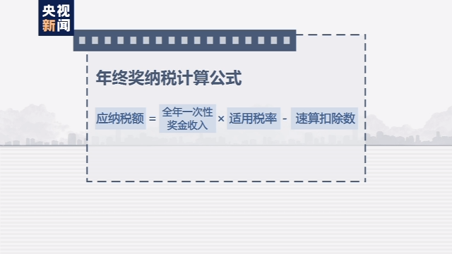 这里有一个公式:应纳税额=全年一次性奖金收入x适用税率-速算扣除数。