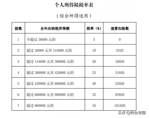个人所得税税率表