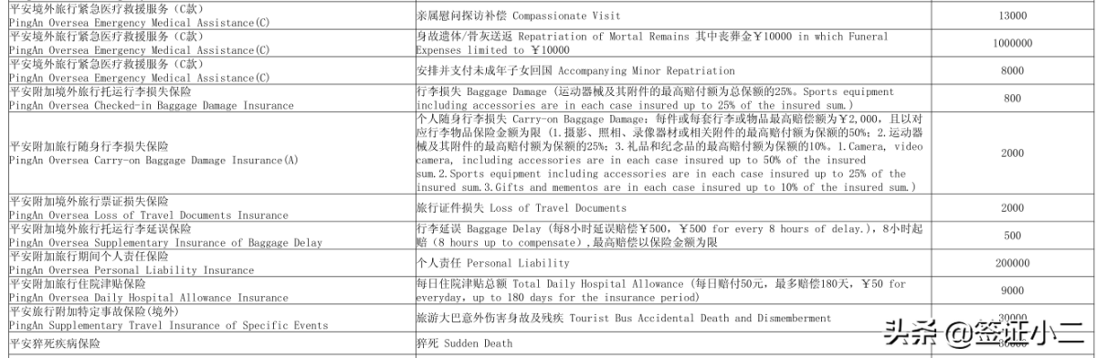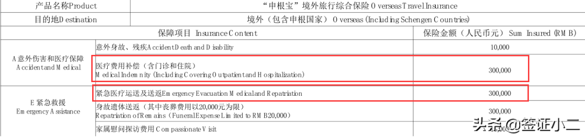 一般常规的旅游保险可能不符合要求,比如下面的境外旅游保险,虽然保障内容多范围广,但其保障内容不能作为申根保险使用。