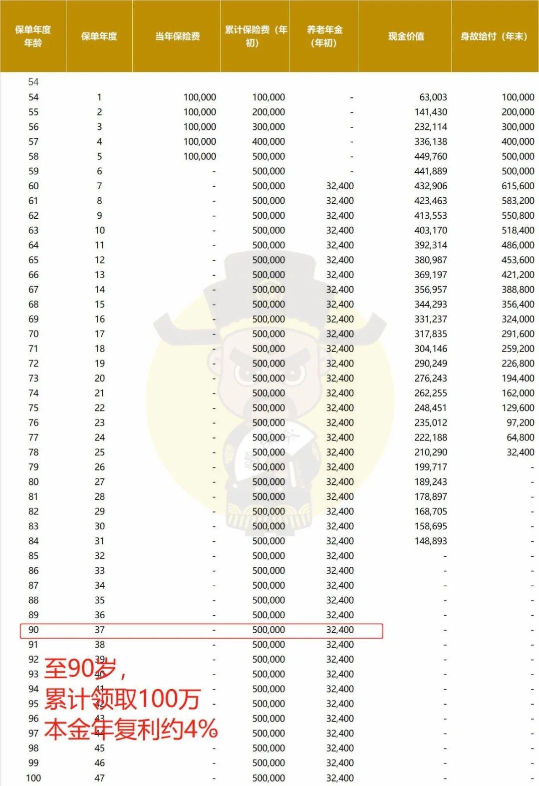 只要活得久(80岁以上),论收益比增额终身寿这类热门理财险还高些,毕竟增额寿上限就是年复利3.5%;