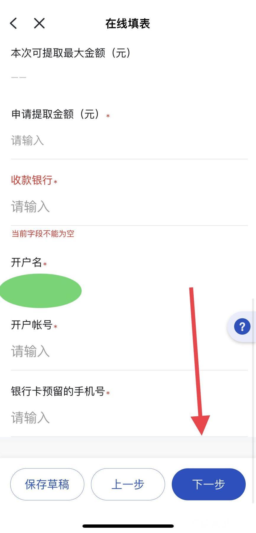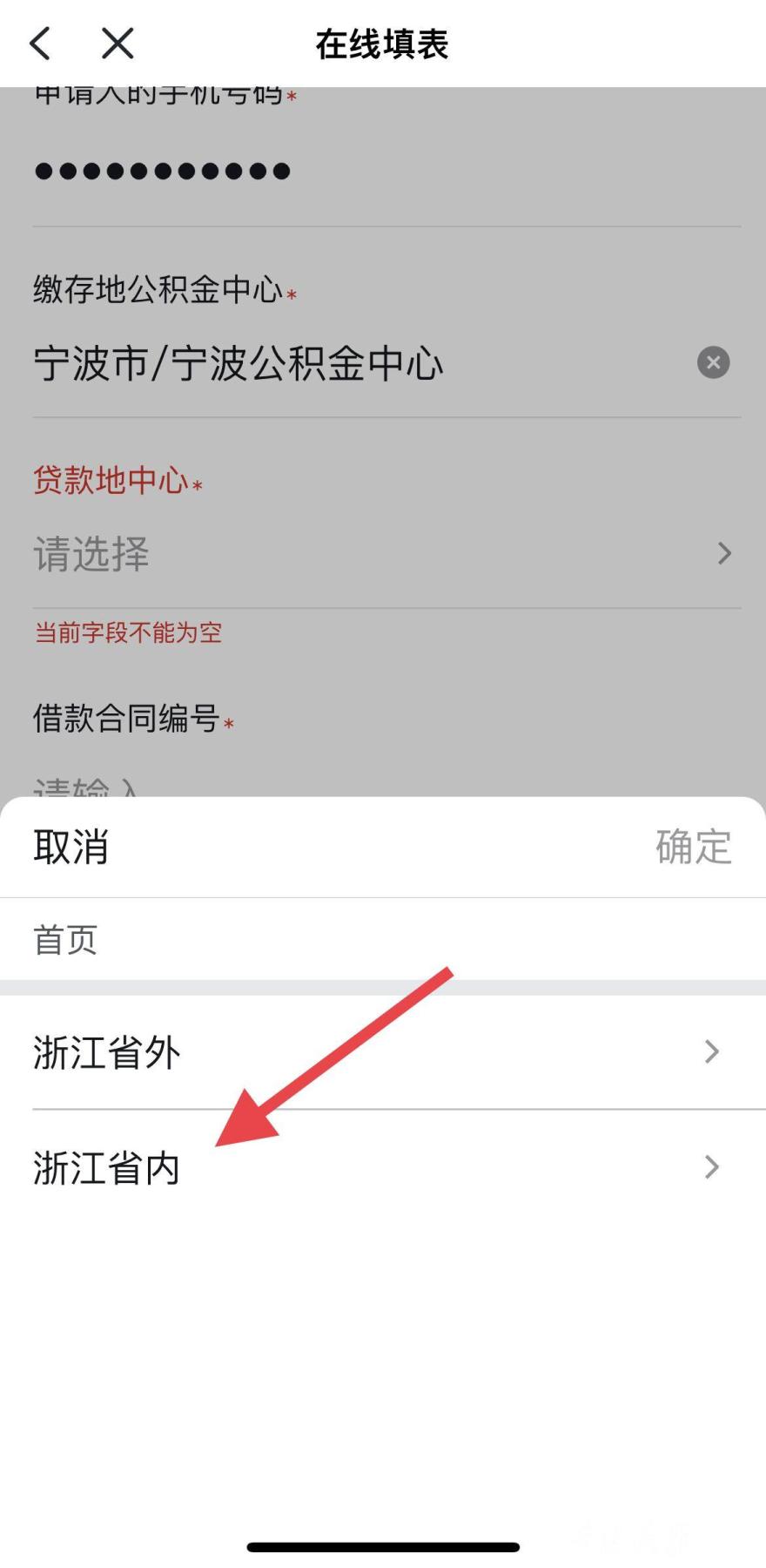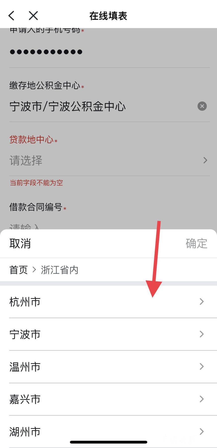 第五步,进行“在线填表”,完成后点击“下一步”。其中,“贷款地中心”,选择“浙江省内”,选择贷款地所在的城市,从下拉框选择借款合同编号,按要求输入申请提取金额、收款银行等信息后,进入“下一步”操作,直至完成办理。