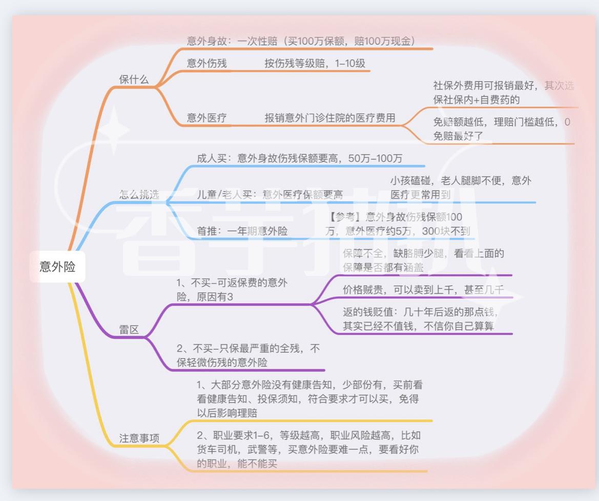 保险知识大全之:怎么选到一款好的意外险,意外保险有什么雷区、保险的坑,一张图给你讲明白了。