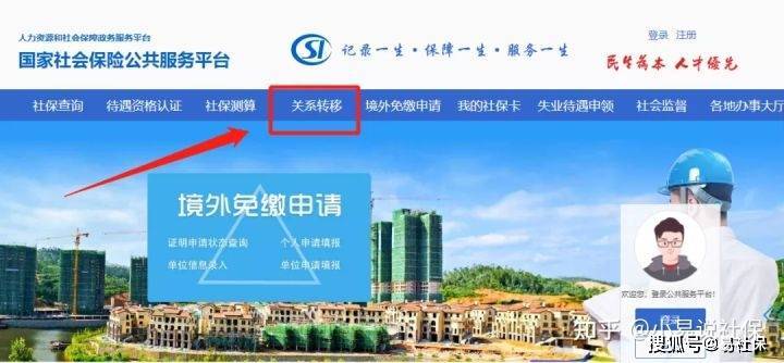 第一步:进入国家社会保险公共服务平台,登录后,在首页中,选择“关系转移”栏位进入;