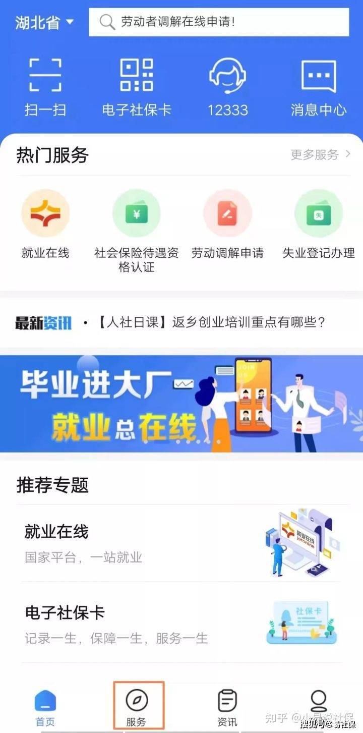 第一步:打开并登录“掌上12333”APP后,点击下方的“服务”按钮;