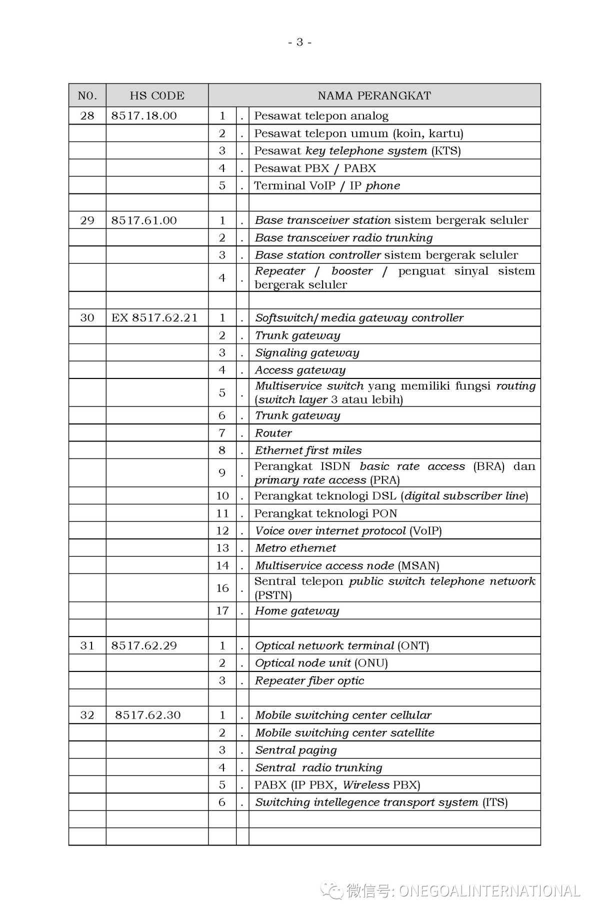 附印尼SDPPI强制产品列表