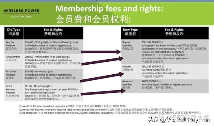2、准会员(Associate Member):每年缴纳年费15000美元,可获得Qi商标许可权,可参与Qi产品互操作性测试,通过对规范草案进行评价来影响草案制定,免费在产品注册数据库中注册产品,且无数量限制,但是无权参加技术会议。