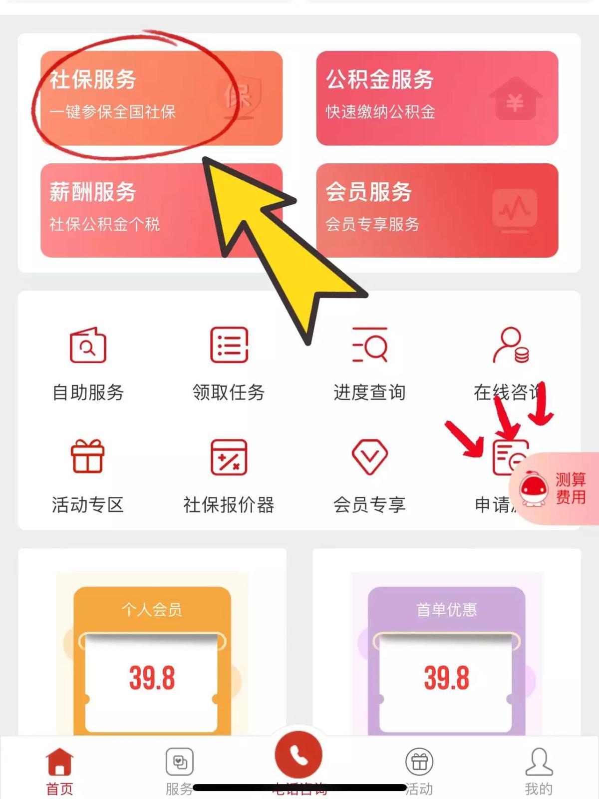 首页左上方“社保服务”进入下单页面,进入下单页面填写个人信息,确认无误后点击“下一步”,核对个人信息及费用明细,一定确认无误后再提交即可。