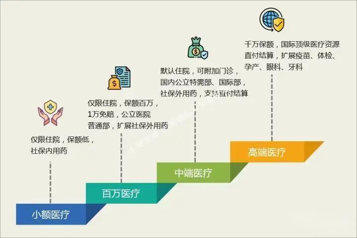 主要是优化我们的就医体验,保障全面但是保费昂贵,扩展公立医院的特需部、VIP部、私立医院和昂贵医院就诊。