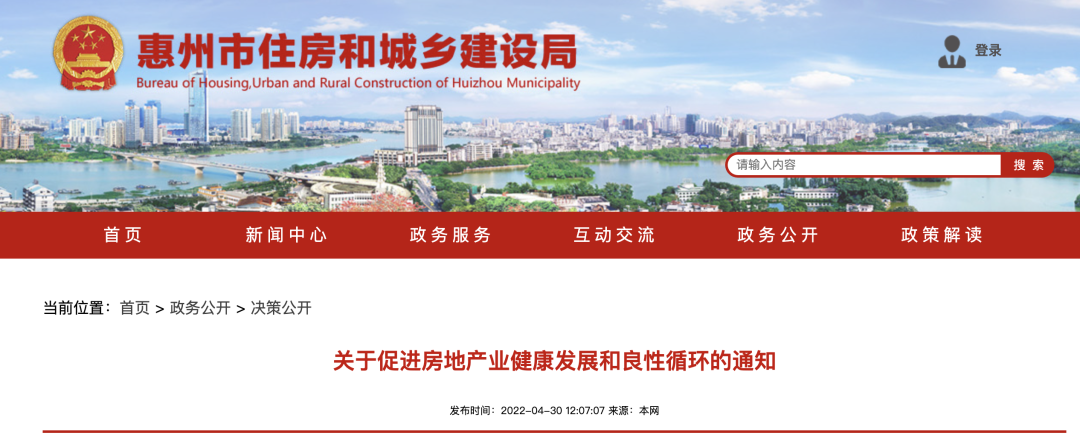 4月30日,广东省惠州市住房和城乡建设局等六部门联合发布《关于促进房地产业健康发展和良性循环的通知》。
