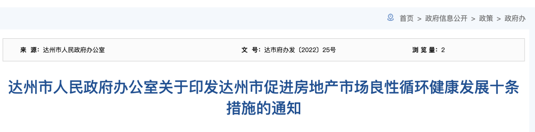 4月28日,四川省达州市人民政府办公室发布《关于印发达州市促进房地产市场良性循环健康发展十条措施的通知》(以下简称“《通知》”),提出十条措施促进当地房地产市场良性循环与健康发展。