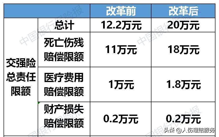 自2020年09月19日零时起,“交强险”保额已经由原来的12.2万元调整为20万元,根据中国银保监会公告 2020年第2号文对新交强险的责任限额作出如下规定(分为有责任和无责任两种情况):