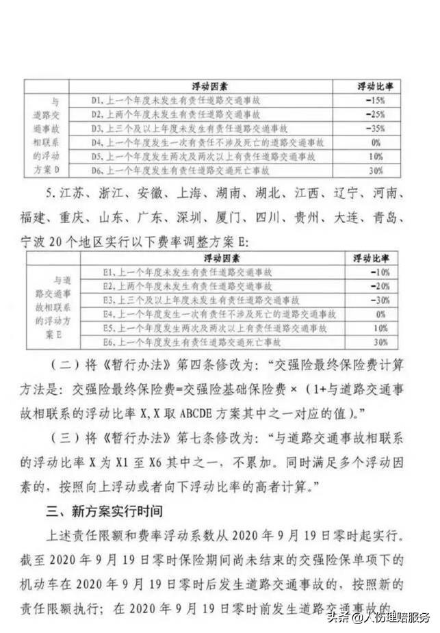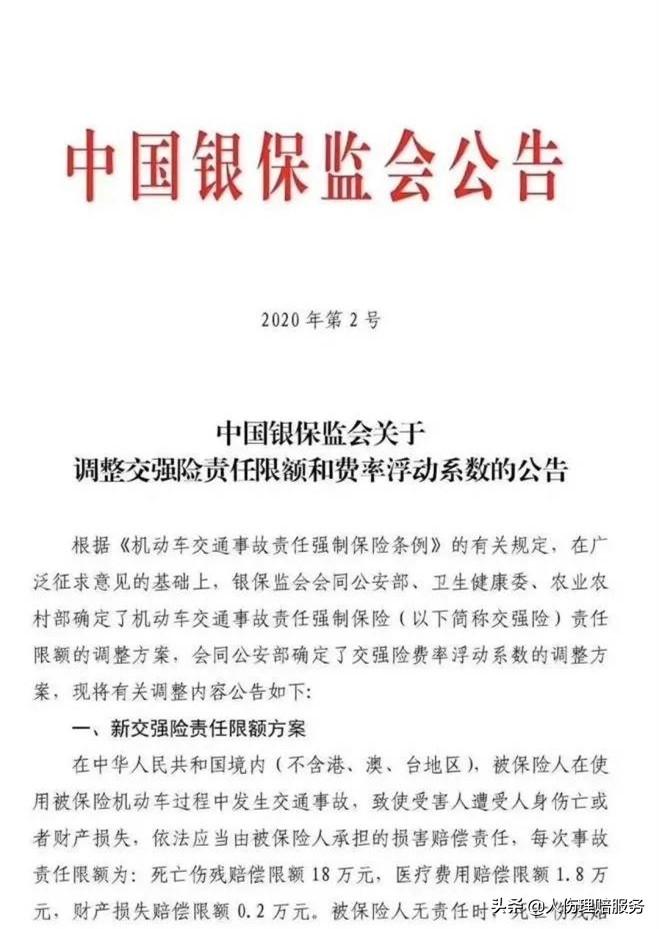 2、该规定于2020年9月19日零时起实行。截至2020年9月19日零时保险期间尚未结束的交强险保单项下的机动车在2020年9月19日零时后发生道路交通事故的,按照新的责任限额执行;在2020年9月19日零时前发生道路交通事故的,仍按原责任限额执行。