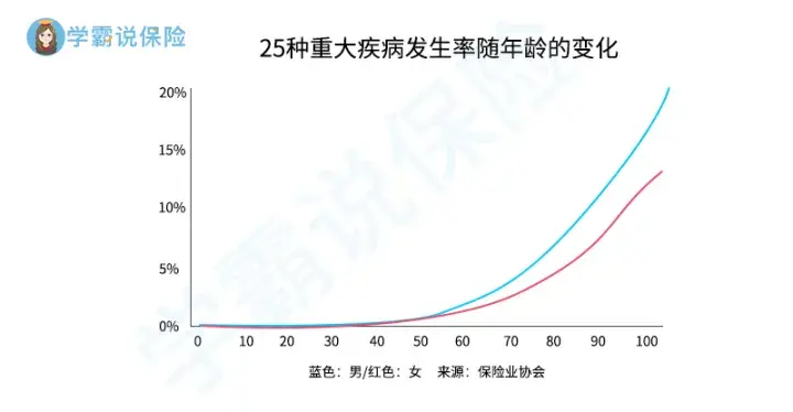 年纪越大,患重疾的概率越高。