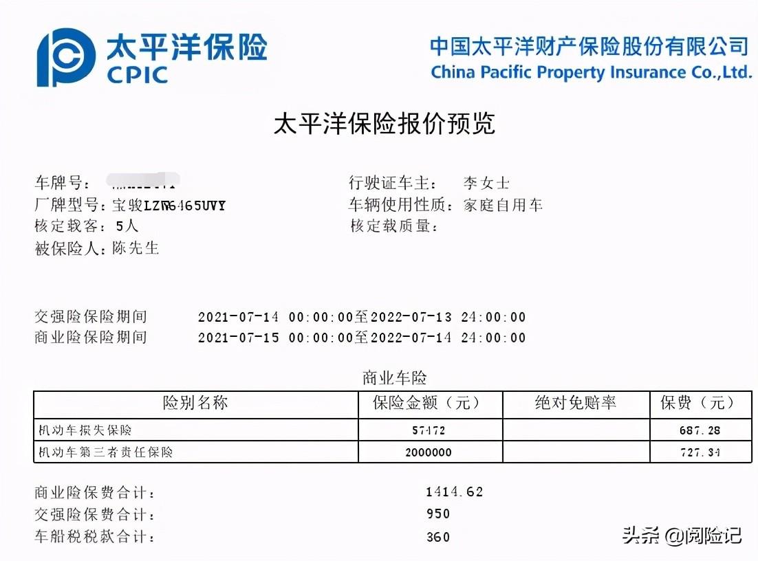 家庭自用的小型客车,2016年买的,至今也有快5年时间,买得太平洋车险,看看报价情况:总共交费2724元