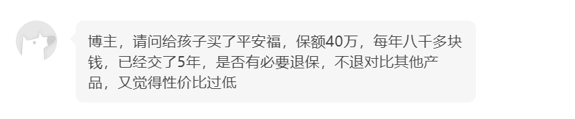但如果节约的钱不多,新旧保障差别不大,那就没必要退了,因为退保不仅仅要考虑少花钱,还要考虑下面这个问题。