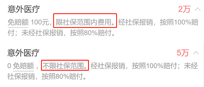 所以,建议大家选择0免赔,100%报销,不限社保的意外险。