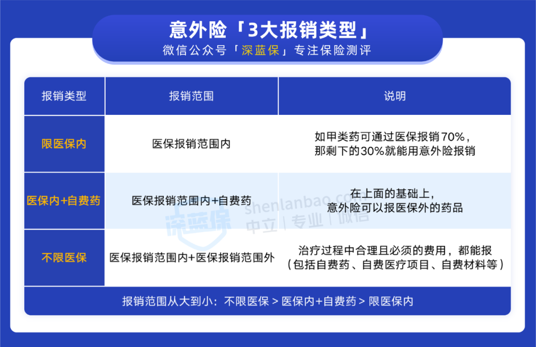 意外险能赔多少钱?有3个关键点:报销范围、免赔额、报销比例。